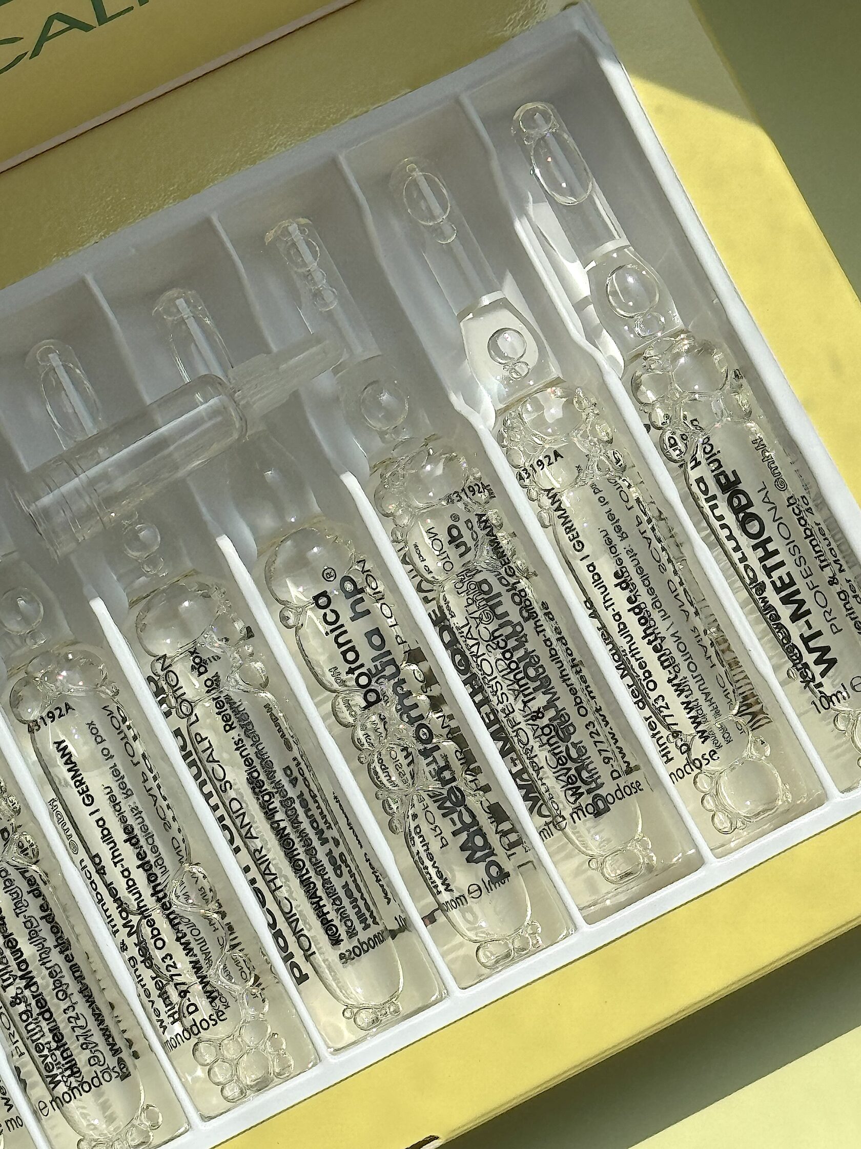 - Надломите ампулу и с помощью специальной пипетки равномерно распределите содержимое по коже головы.