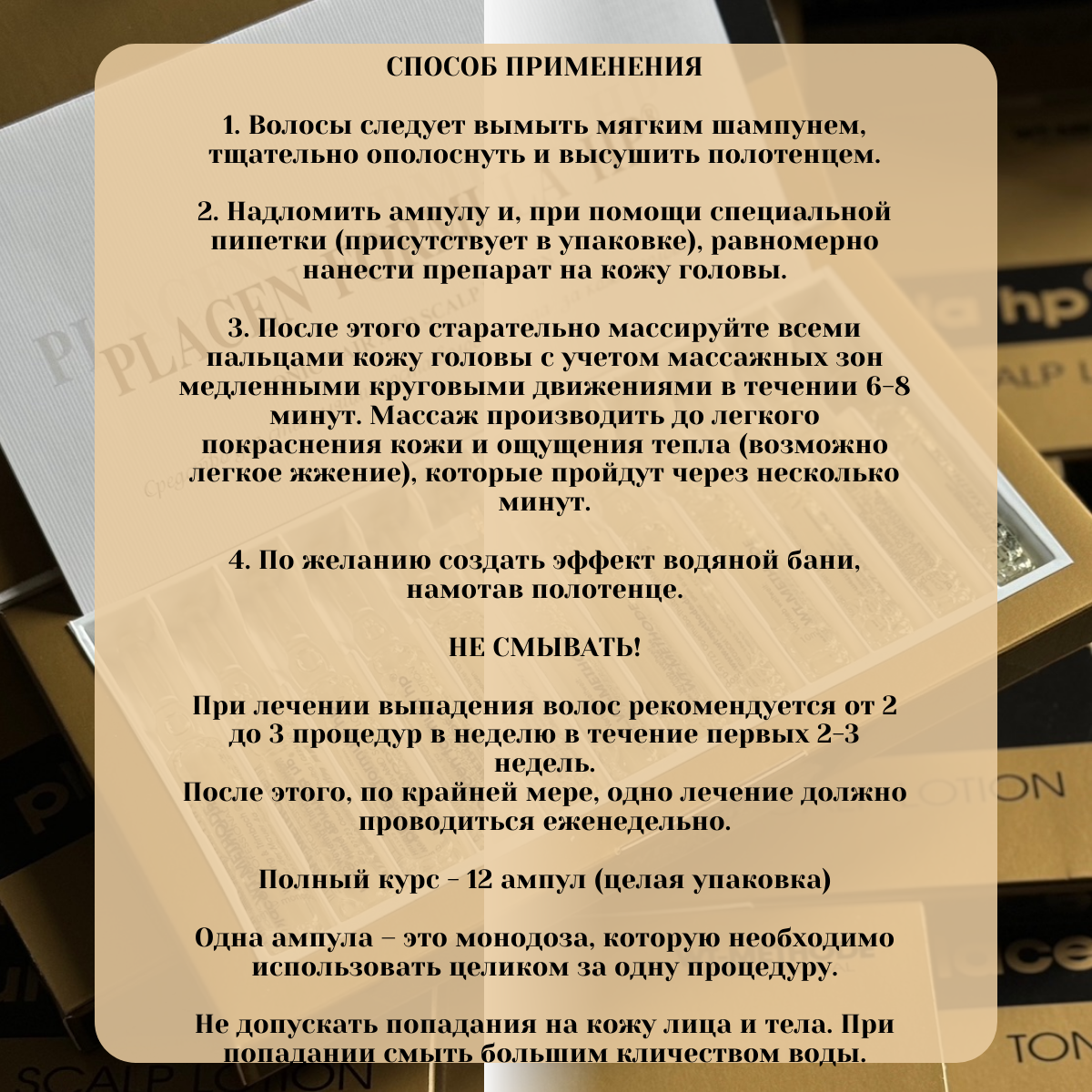 2. Нанесение лосьона: Надломите ампулу и распределите содержимое по коже головы, сосредоточиваясь на зонах выпадения.